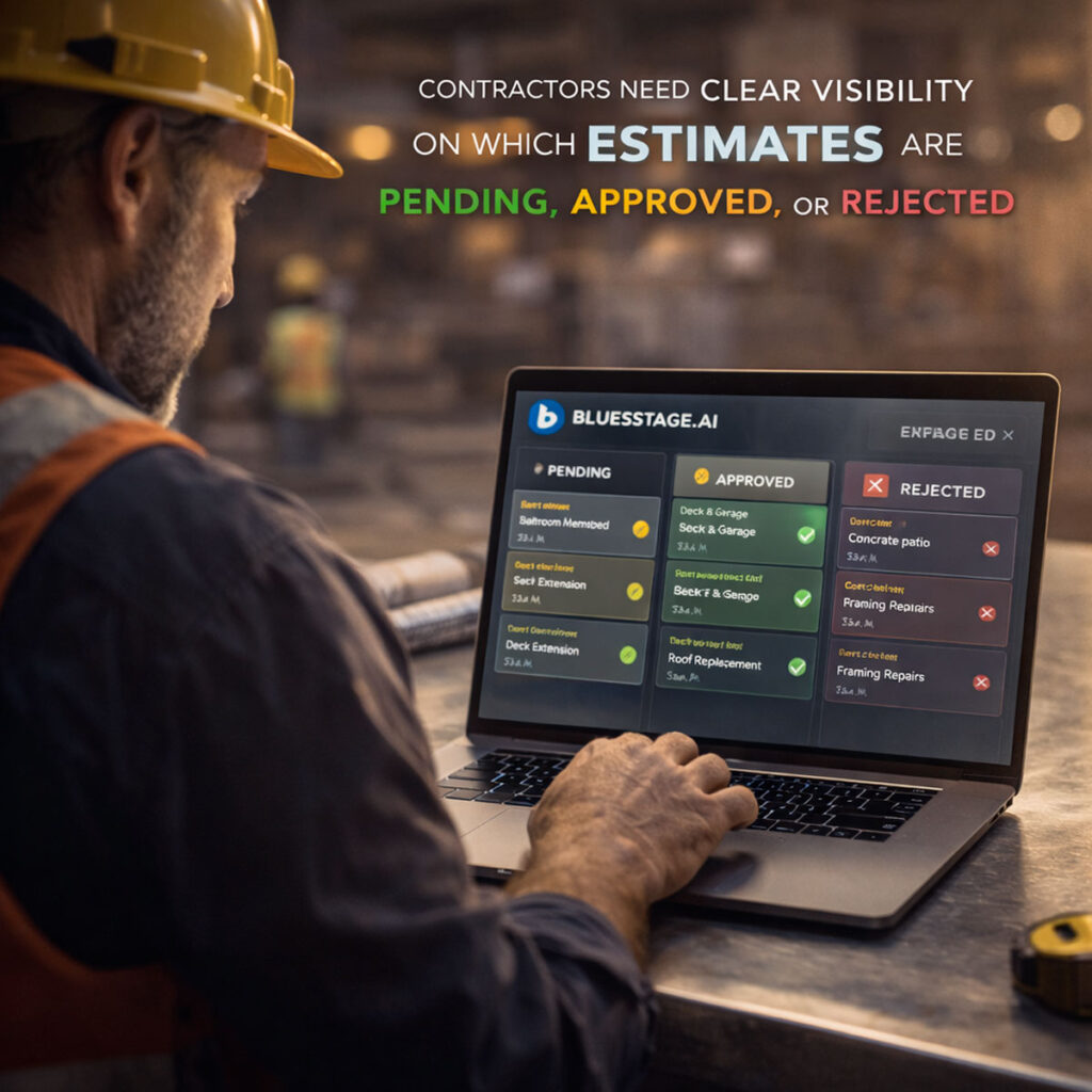 Contractors need clear visibility on which estimates are pending, approved, or rejected.